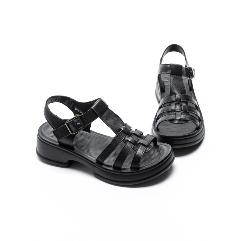 Dámske sandále vyrobené z pravej kože 246609T Čierna | Formazione