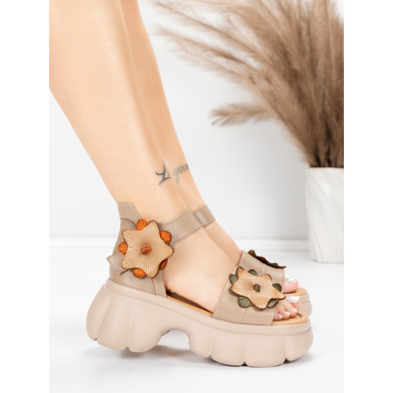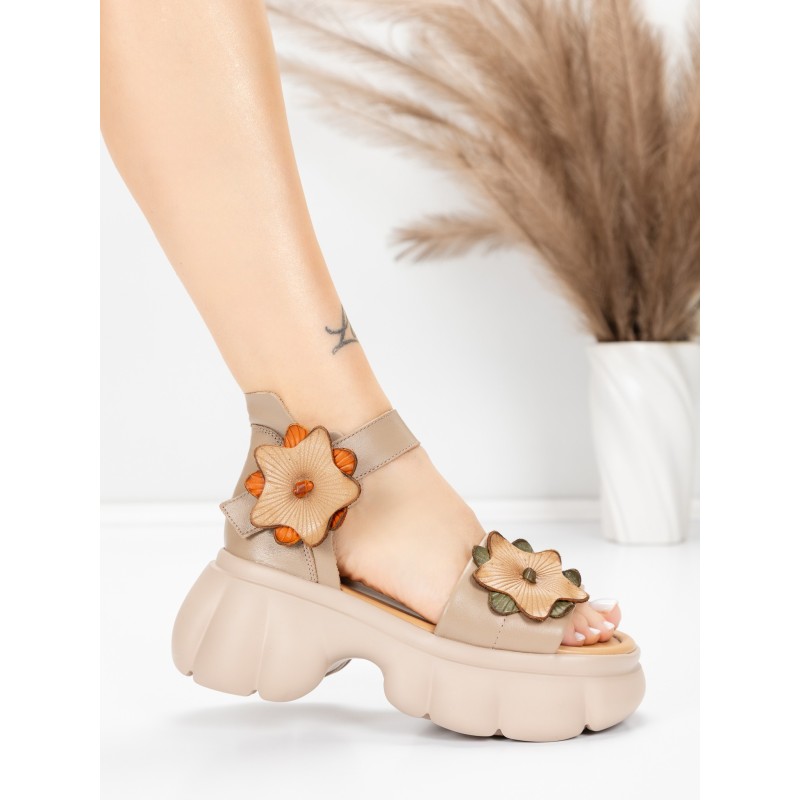 Dámske sandále vyrobené z pravej kože 18651 Broskyňová | Advancer