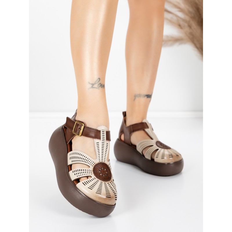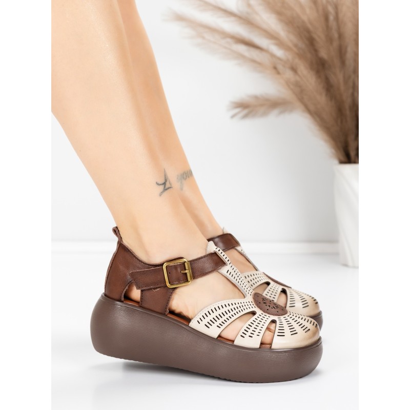 Dámske sandále vyrobené z pravej kože 10682 Krémovej farby-Hnedá | Advancer