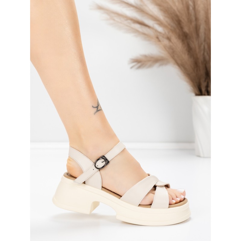 Dámske sandále vyrobené z pravej kože 2567 Krémovej farby | Advancer