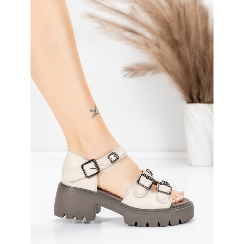 Dámske sandále vyrobené z pravej kože 10672 Krémovej farby | Advancer