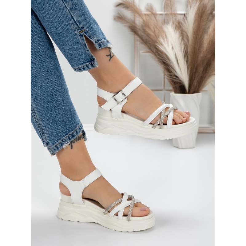 Dámske sandále na platforme 3H19 Biely | Mei