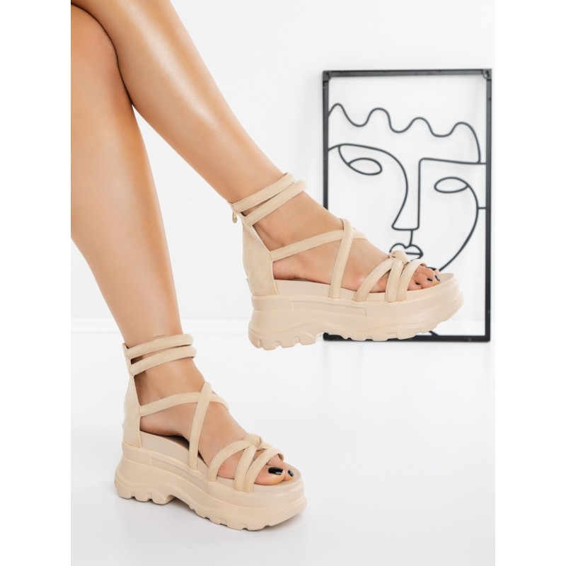 Dámske sandále na platforme 5WL27 Béžová | Mei
