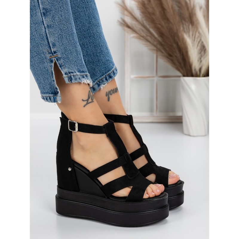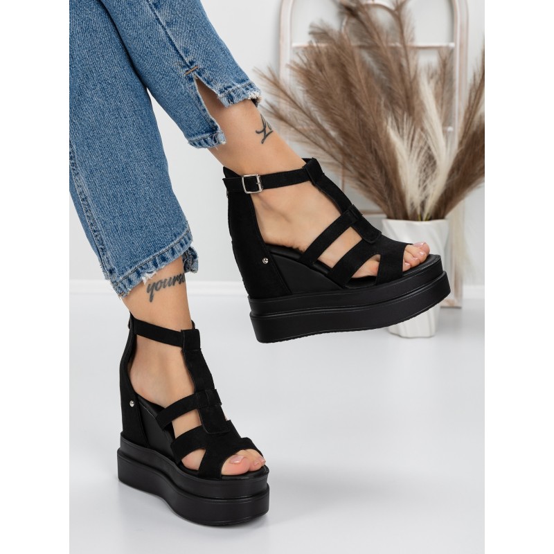 Dámske sandále na platforme 5WL13 Čierna | Mei