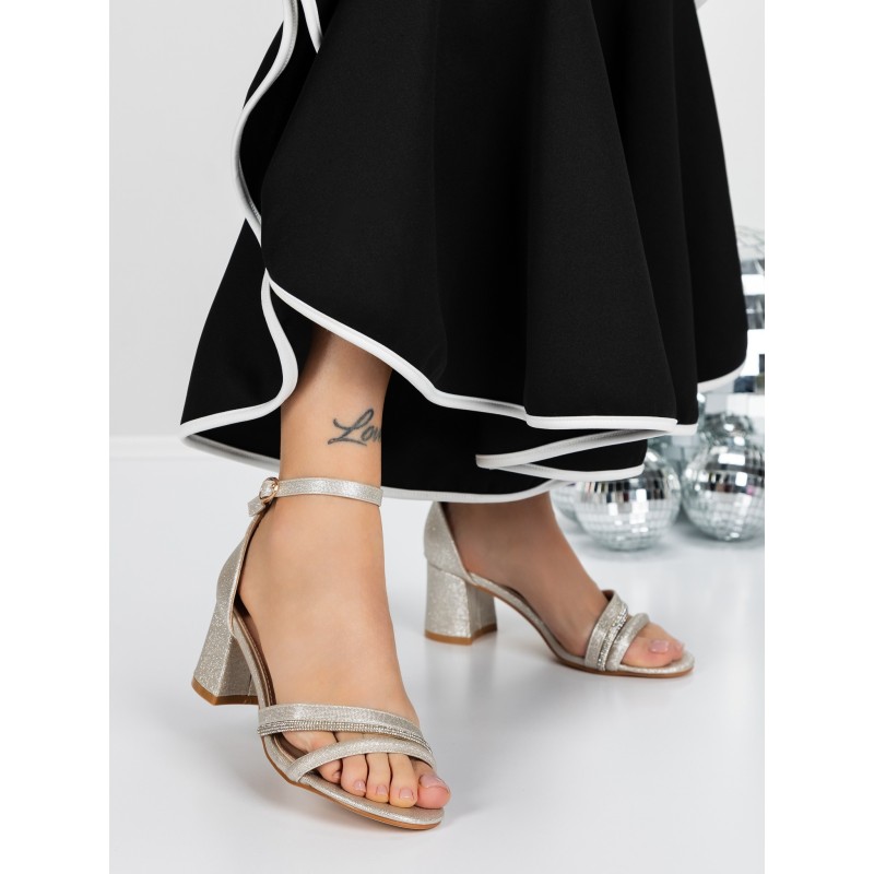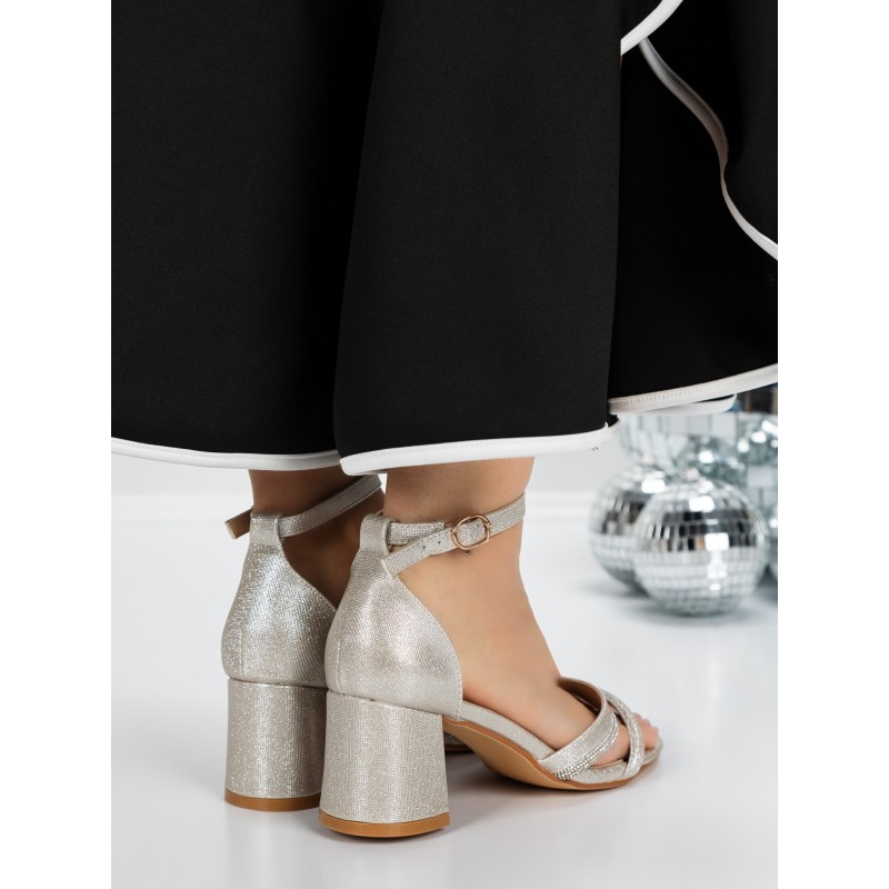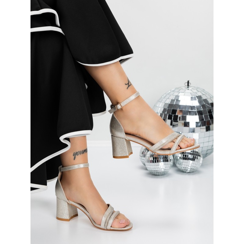 Sandale Dama cu Toc Gros 3YXD90 LIGHT GOLD | MEI