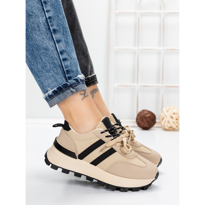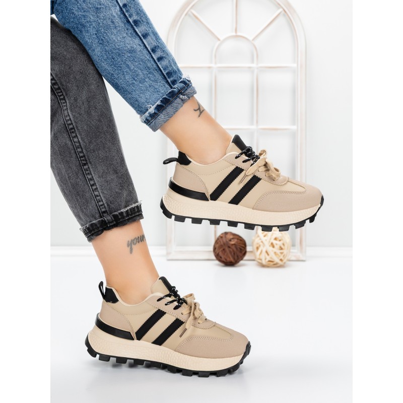 Dámske tenisky 5WL115 Béžová-Čierna | Mei