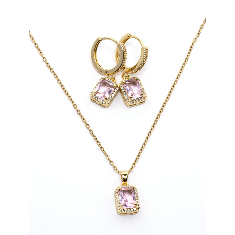 Sada náhrdelníka a náušníc CLR001 Zlatý-Ružová | Mei