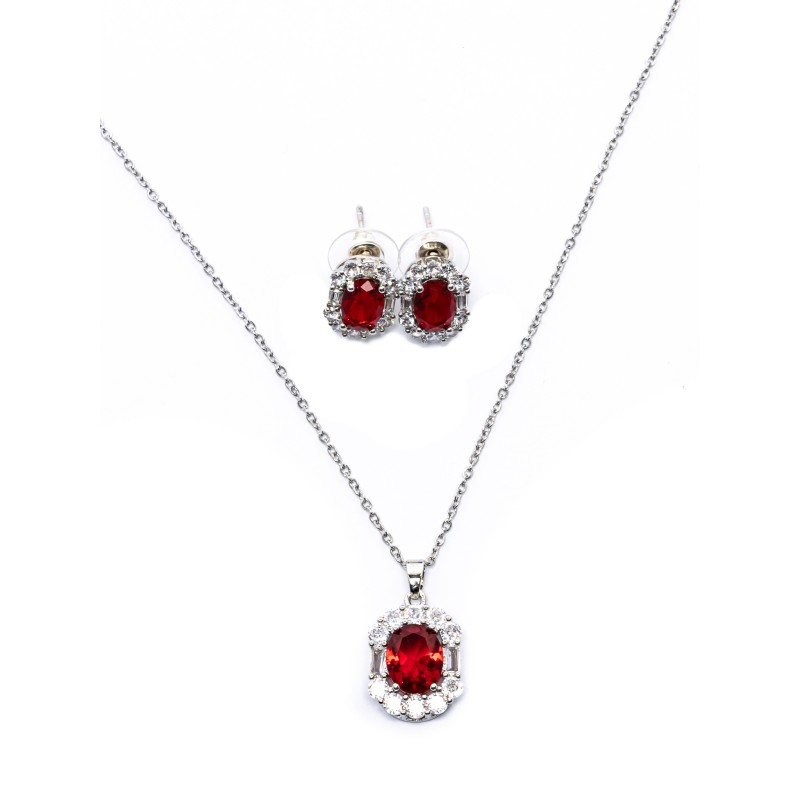Sada náhrdelníka a náušníc T1021300 Strieborná-Červená | Mei