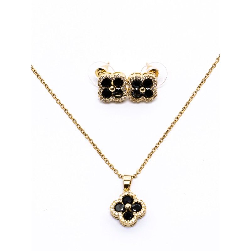 Sada náhrdelníka a náušníc CLR003 Zlatý-Čierna | Mei