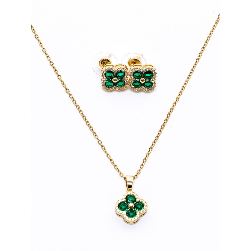 Sada náhrdelníka a náušníc CLR003 Zlatý-Zelená | Mei