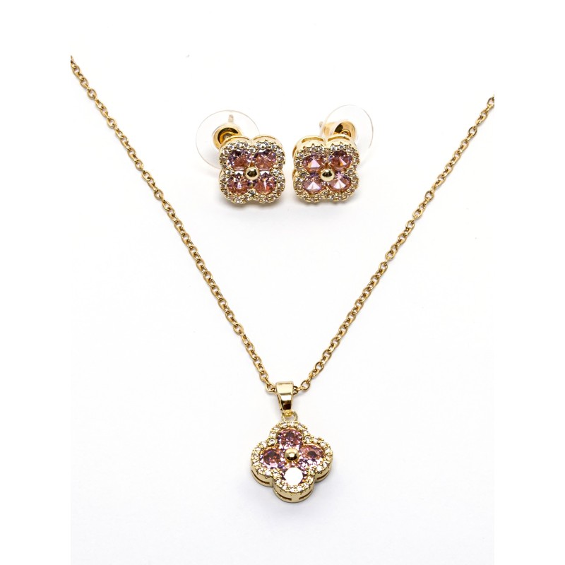 Sada náhrdelníka a náušníc CLR003 Zlatý-Ružová | Mei