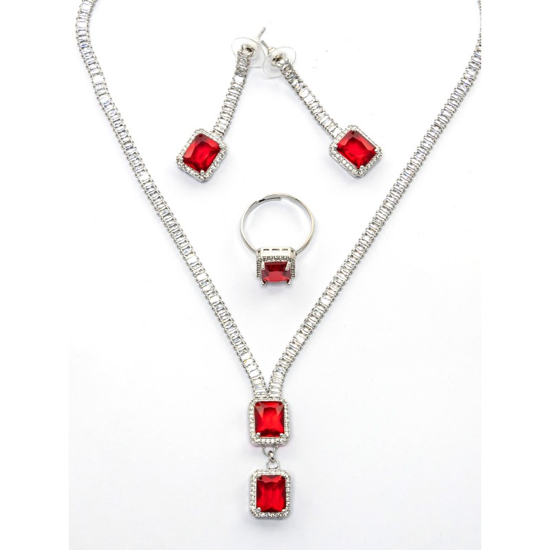 Sada náhrdelníka a náušníc CLR016 Strieborná-Červená | Mei
