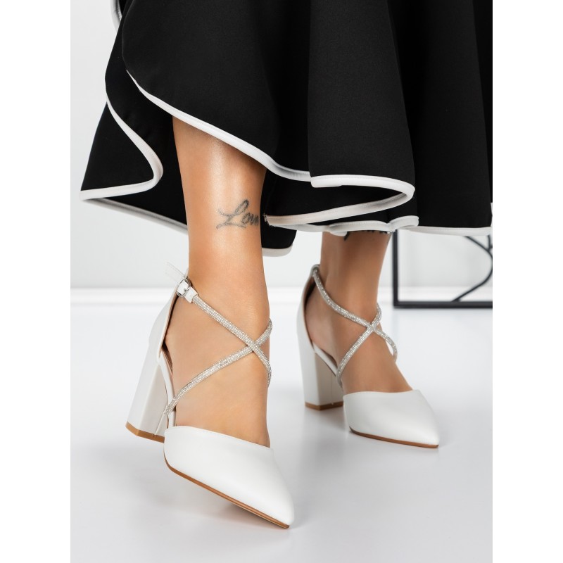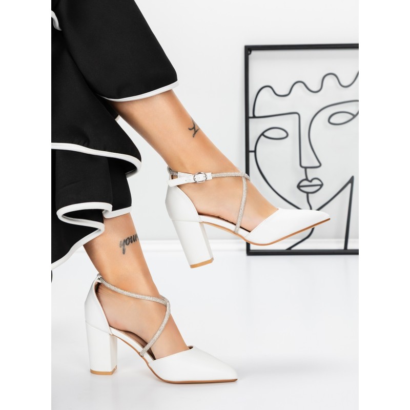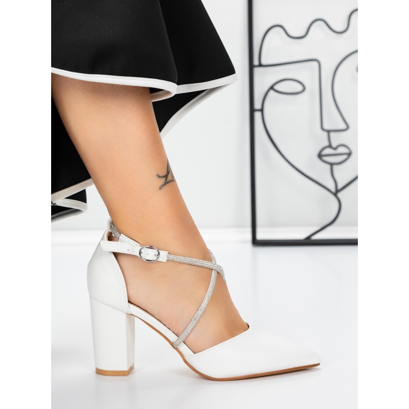Pantofi cu Toc Gros 2YXD63 WHITE | MEI
